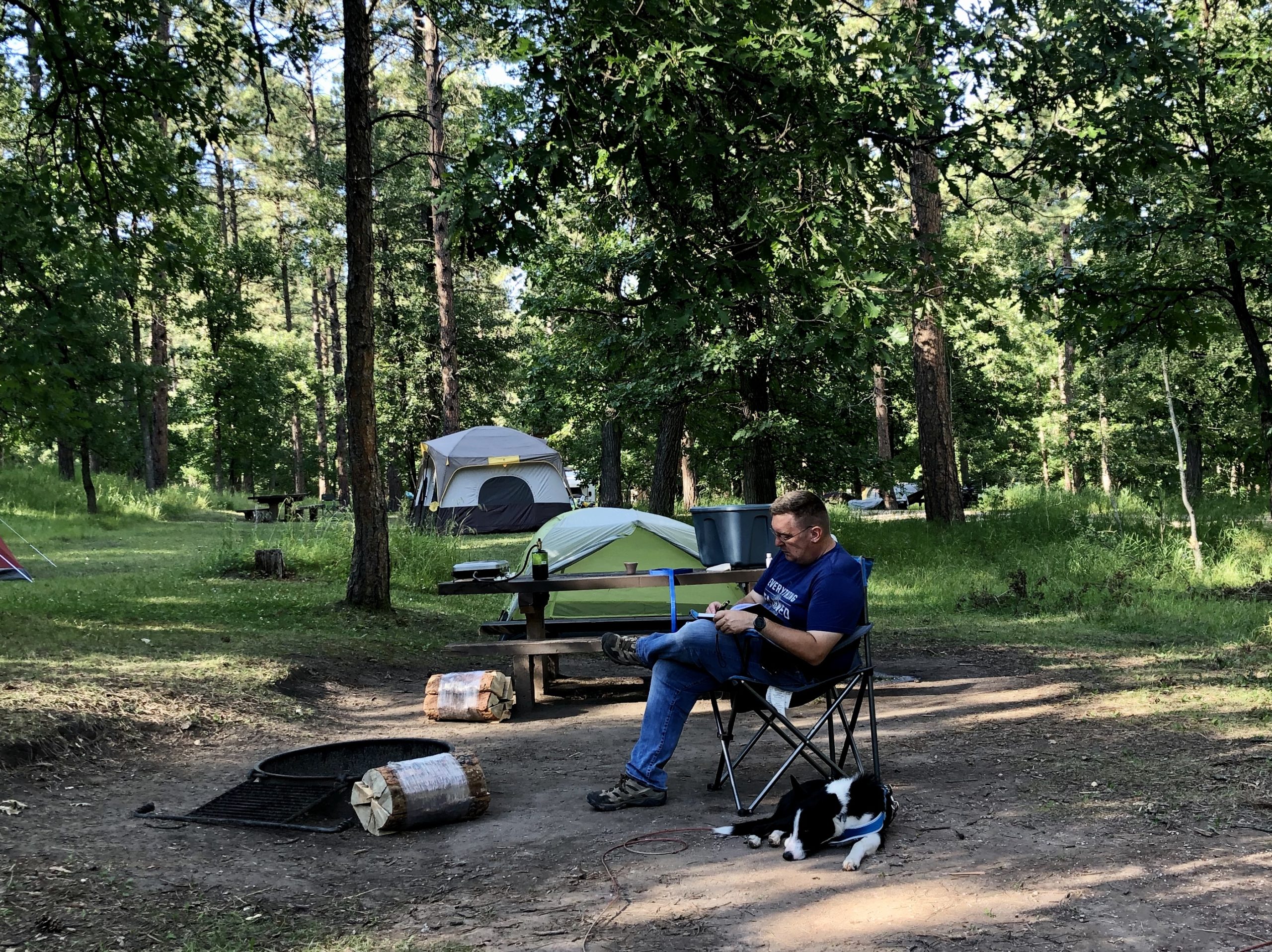 Finally here is Cash and I at the campsite. In addition to keeping this blog, I also brought along my paper journal, that one is for me alone.